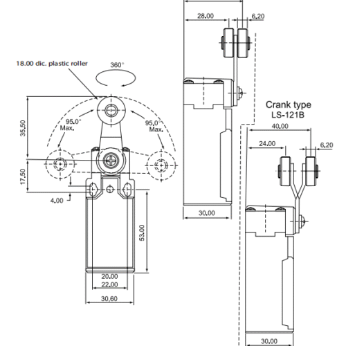 CLS 131 / Chave fim de curso acionamento tipo roldana ajustavel 1NA+1NF 10A/250V IP66