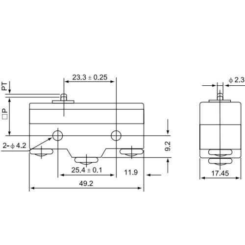 CWLD2 / Chave fim de curso acionamento tipo pino com roldana 1NA/1NF duplo circuito 10A/250V IP66
