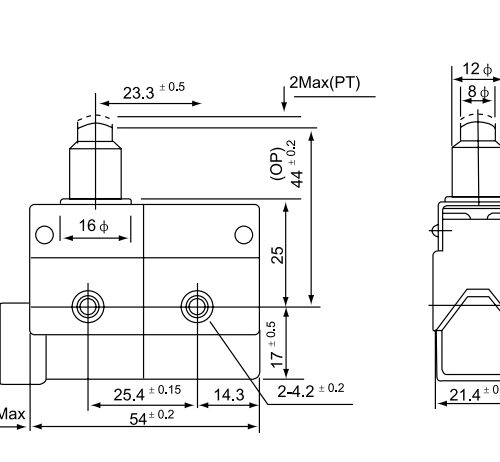 CZ 7110 / Micro switch fim de curso acionamento tipo pino 1NA/1NF 10A/250V IP40